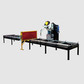 机械人配备12米机械人行走轨道,,,,,,可实现对两个长焊接工位举行焊接。。。。接纳脉冲气保焊工艺实现铝材焊接。。。。工装接纳直线导轨可动式,,,,,,可凭证工件种类改变工装位置,,,,,,实现多种工件焊接。。。。